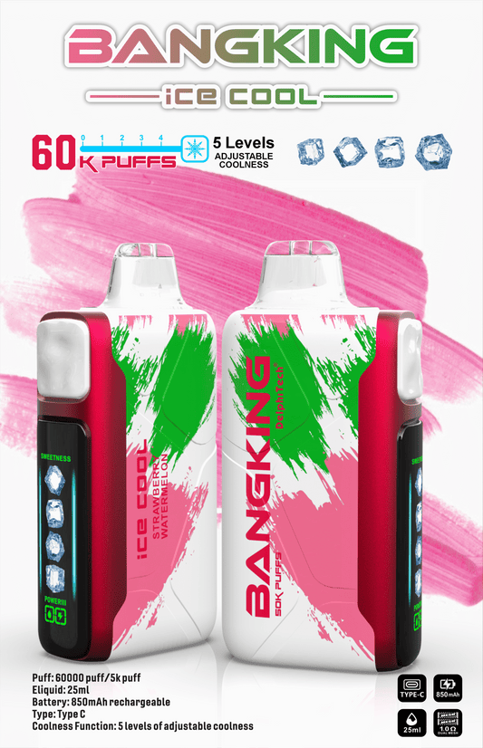 【Bang King Ice Cool 60000口拋棄式】爆款上新/一次性超大容量5級可調涼度可充電電子煙/派對解癮神器-VAKA糖果雲煙館